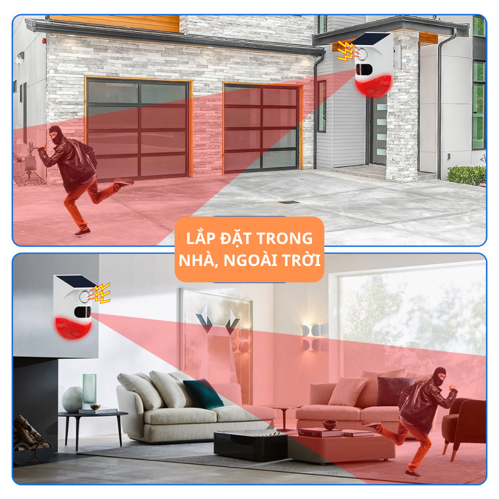 • Khi có xâm nhập, thiết bị phát ra âm thanh cường độ cao 120 Decibel và đèn nháy