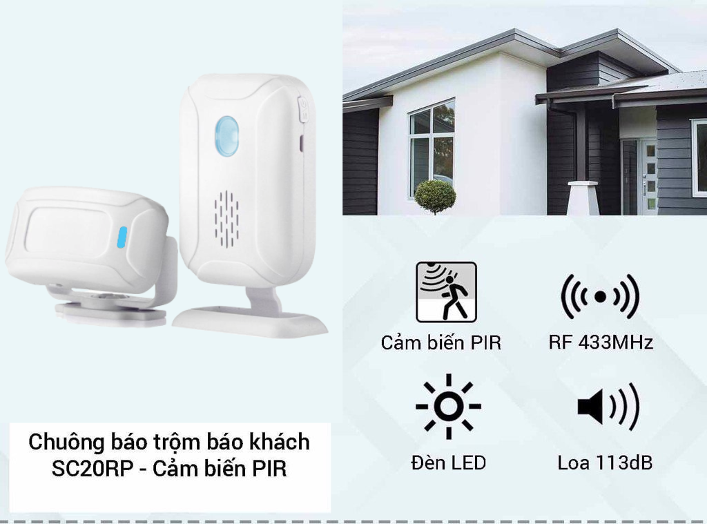 SC20RP đa năng: làm chuông cửa, báo khách, báo động chống trộm, đèn chiếu cảm ứng