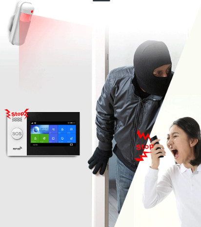 - Khi phát hiện có người trong vùng bảo vệ hoặc cửa từ phát hiện nhà bị cạy cửa, tín hiệu sẽ được truyền về bộ điều khiển trung tâm. Lập tức trung tâm sẽ bật còi hú báo động, đồng thời tự động nhắn tin gọi điện đến cho các số điện thoại đã cài đặt trước (Cài đặt được tối đa 5 số điện thoại bao gồm số di động, điện thoại bàn, các số khẩn cấp, số quốc tế…). Khi bắt máy sẽ nghe được âm thanh hiện trường, ta có thể dùng điện để tắt báo trộm hoặc kích hoạt lại báo trộm.