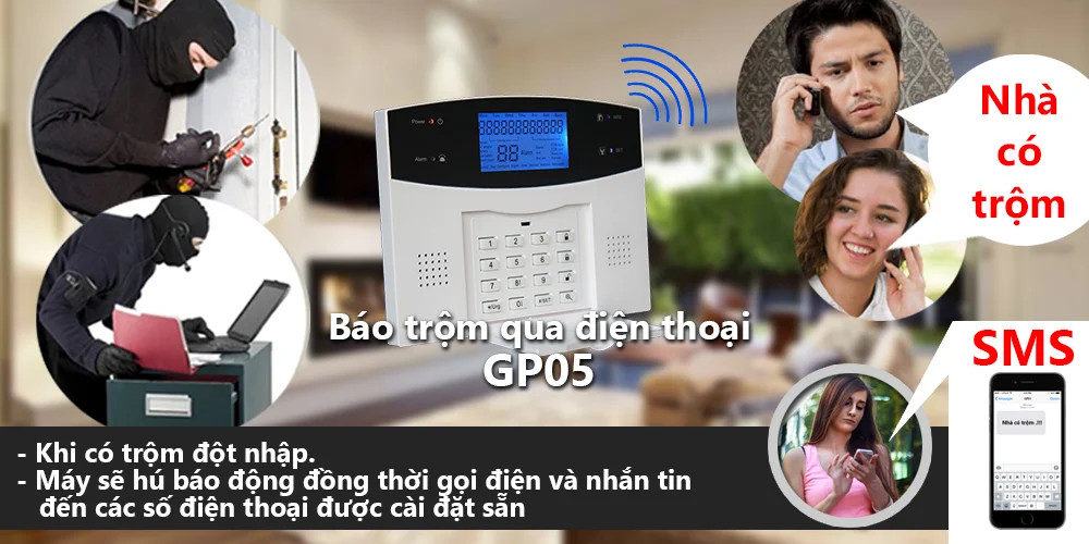 Hệ thống báo động không dây GP05 được trang bị công nghệ mạng kép dùng theo kiểu như điện thoại di động (GSM) để báo động thông minh và các cảm biến (cảm biến cửa, cảm biến chuyển động, cảm biến khói...) không và có dây để tạo sự an ninh cho ngôi nhà bạn.