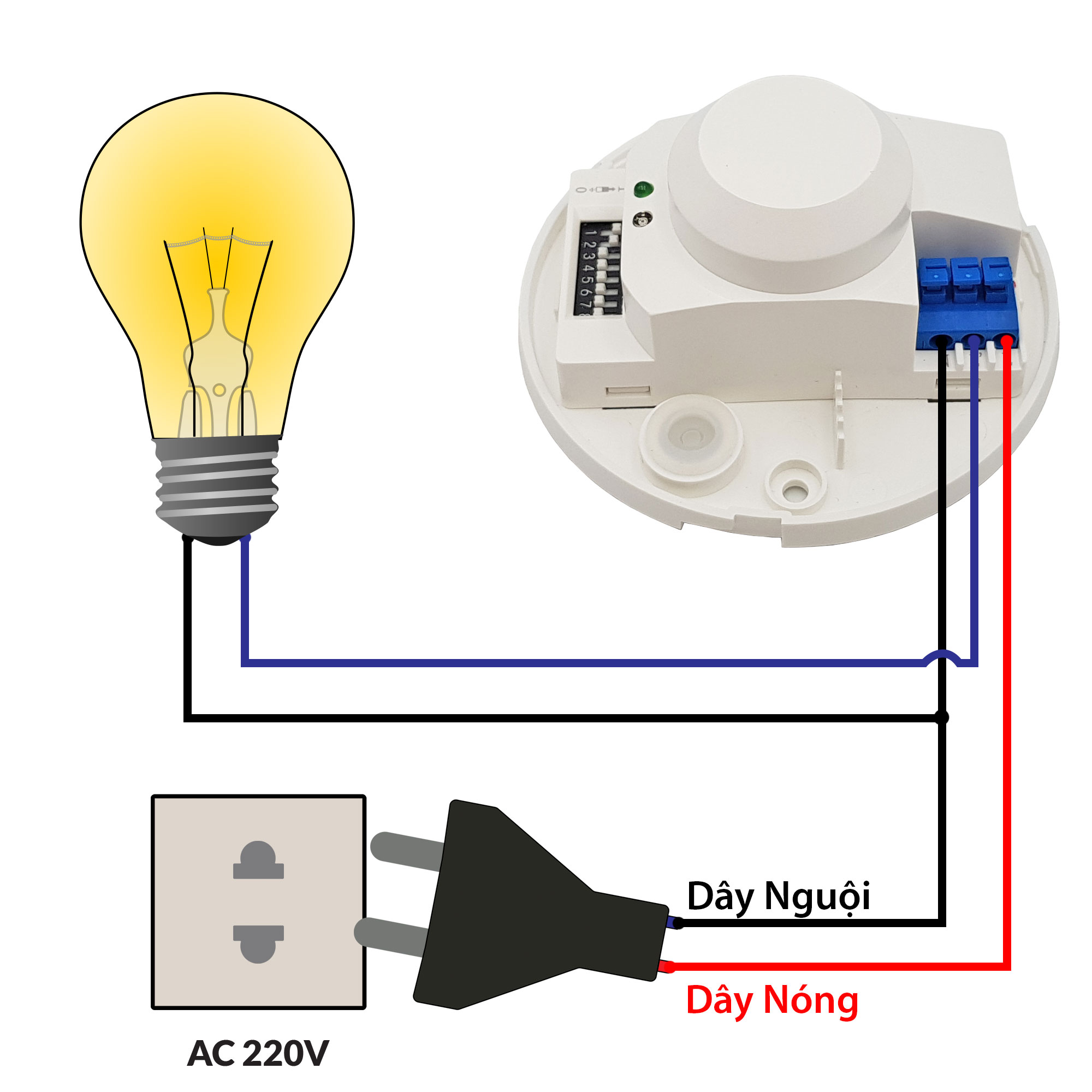 1. Cảm biến chuyển động: khi có chuyển động trong phạm vi phát hiện, công tắc sẽ đóng điện và tự ngắt sau một khoảng thời gian trễ khi không có chuyển động cuối cùng.