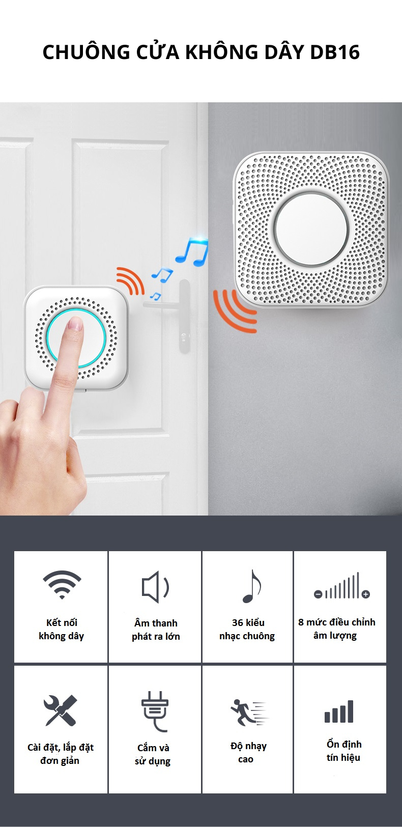 TÍNH NĂNG NỔI BẬT: CHUÔNG CỬA KHÔNG DÂY DB16