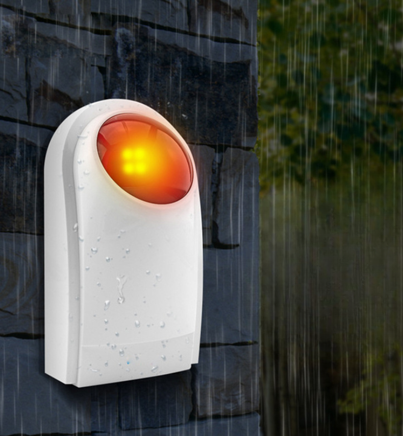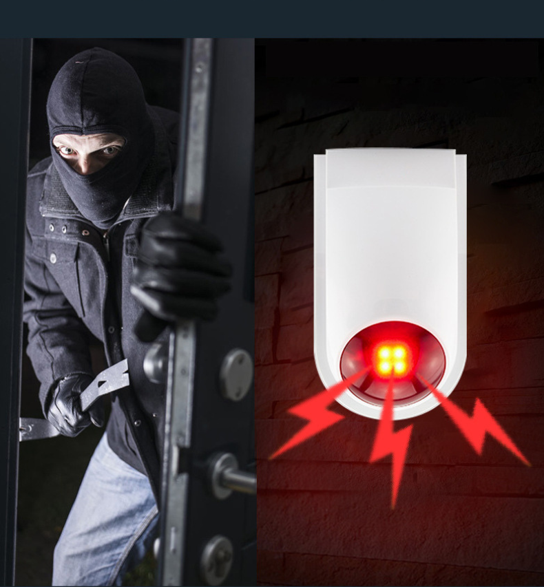 CÒI BÁO ĐỘNG CÓ ĐÈN CHỚP NHÁY KHÔNG DÂY FXR2 khi phát hiện kẻ gian xâm nhập bất hợp pháp, cảm ứng xung quanh sẽ ngay lập tức gửi tín hiệu không dây tín hiệu để thông báo cho còi báo động và còi báo động ngay lập tức cảnh báo cho mọi người xung quanh bằng âm thanh và ánh sáng.