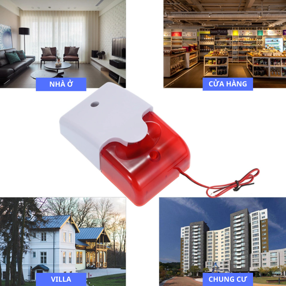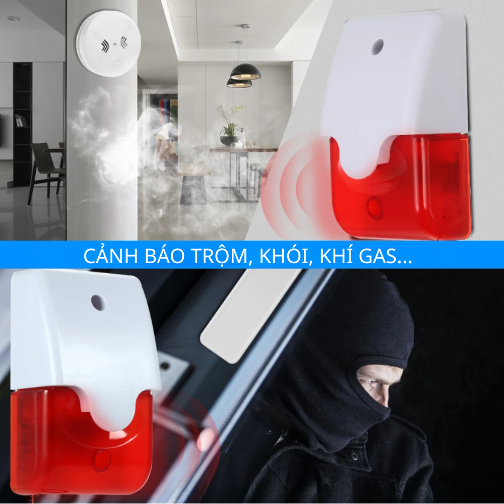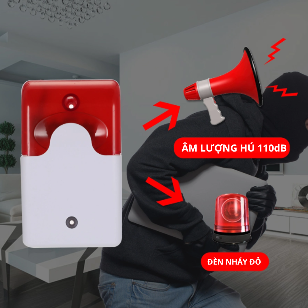 CÒI BÁO ĐỘNG CÓ ĐÈN NHẤP NHÁY SG5 hoạt động kết hợp với các thiết bị báo trộm an ninh như hàng rào hồng ngoại, hoặc kết nối với bộ báo động trung tâm hoặc để dùng trong các ứng dụng báo động cần đèn cảnh báo sử dụng điện 12V. Khi có kẻ lạ đột nhập và bị hệ thống an ninh phát hiện, tín hiệu sẽ được truyền đến còi báo an ninh. Đèn sẽ sáng nháy cảnh báo đi kèm còi hú với âm lượng hơn 110DB không chỉ khiến kẻ đột nhập hoảng sợ mà còn báo động cho người xung quanh, bảo vệ an toàn cho tài sản của bạn.