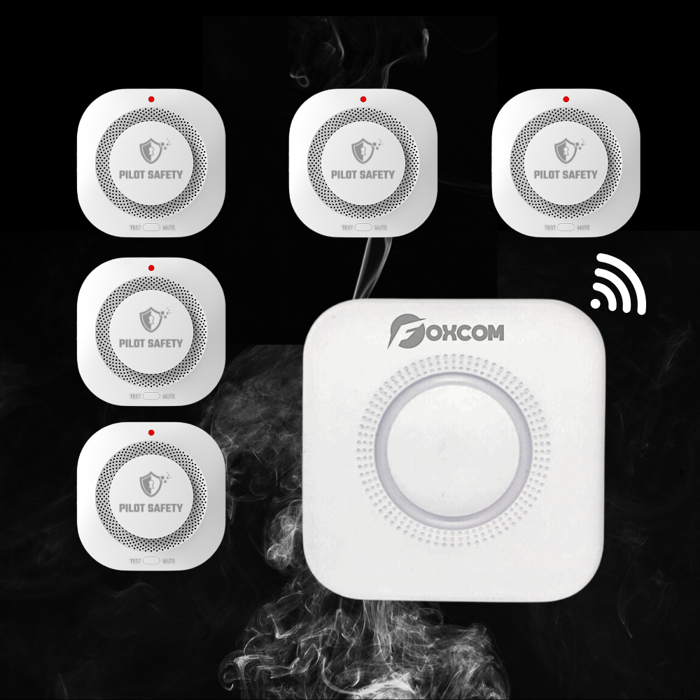 Combo báo cháy PC01. Combo giải pháp này gồm có: 1 bộ trung tâm báo cháy FC01 wifi và 5 đầu báo khói không dây PS55.